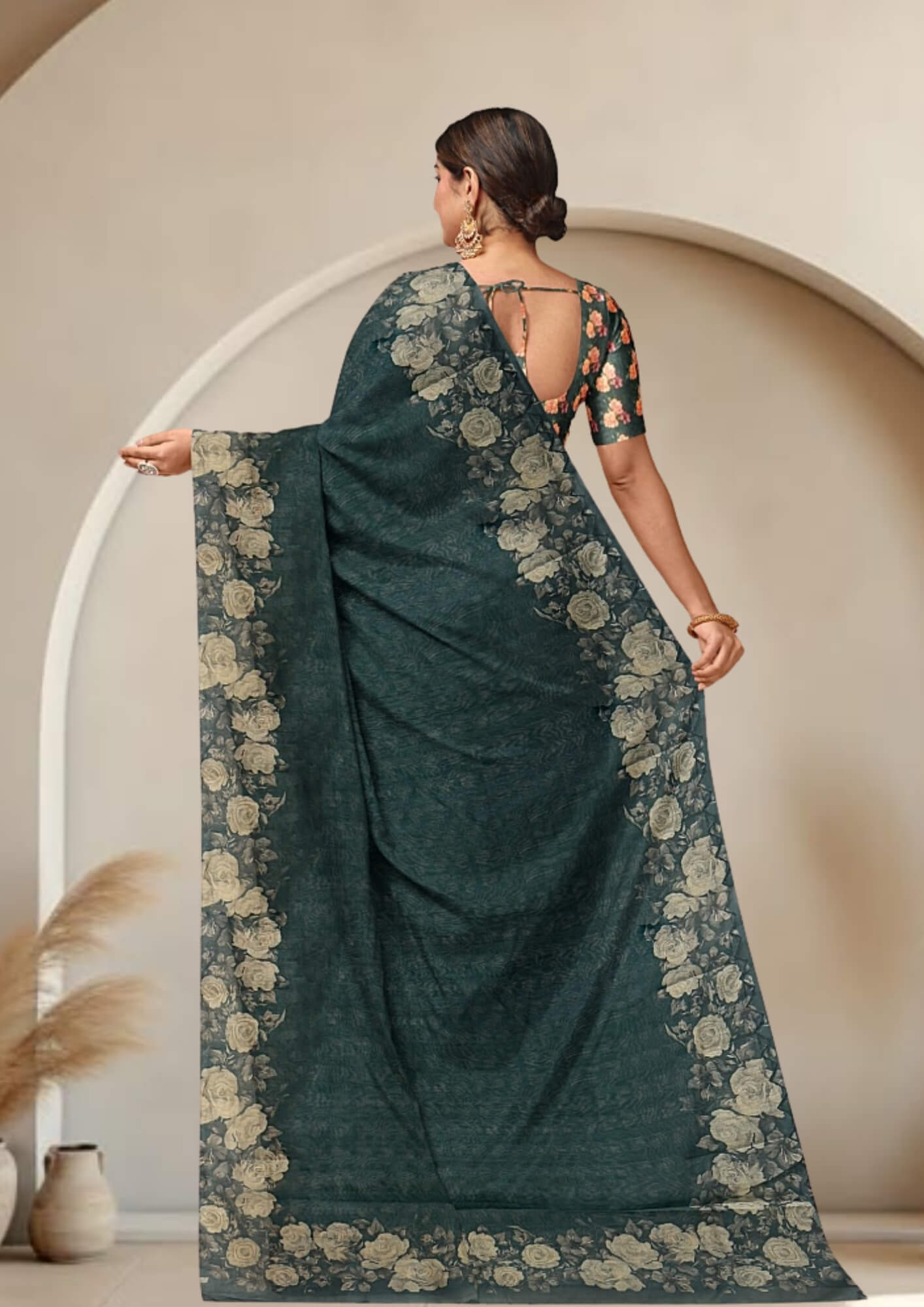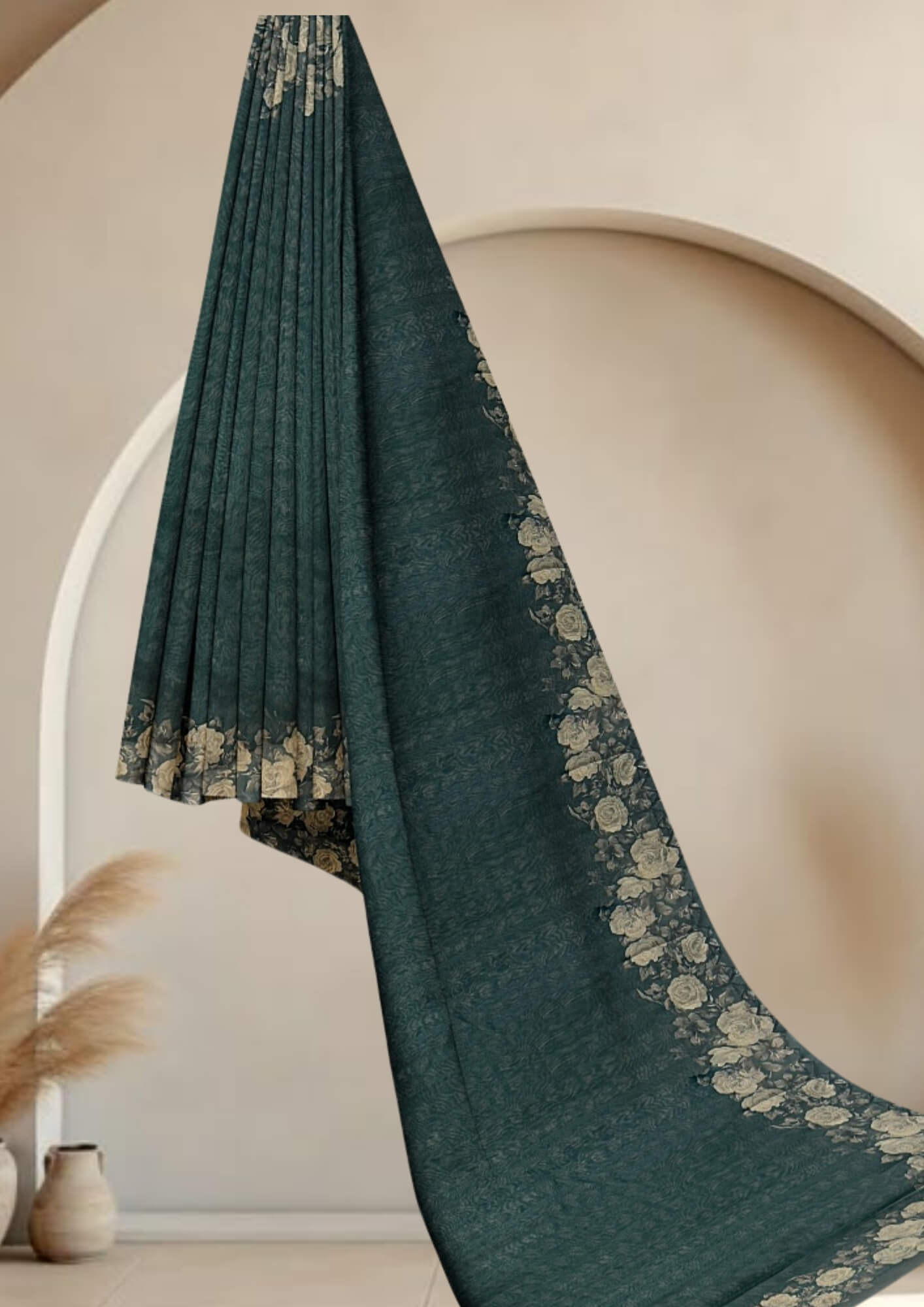 Step into the spotlight with our exceptionally crafted Green Half Tussar Saree, a testament to innovative design and meticulous detail. This saree redefines traditional elegance with a contemporary twist. The foundation is a breathable and beautiful half Tussar silk fabric, cherished for its unique texture and comfortable drape. It provides the perfect canvas for the striking digital print that unfolds across the saree. These vivid, high-definition prints offer a modern artistic expression, ensuring your saree is truly one-of-a-kind. Adding another layer of sophistication is the intricate cut work. Each delicate cut is precisely executed, creating an ethereal lace-like effect that enhances the saree's visual appeal and adds a luxurious, handcrafted touch. This Green Half Tussar Saree with Digital Print and Cut Work is an ideal choice for those seeking a blend of cultural heritage and contemporary style. It’s perfect for making a memorable impression at any special occasion.