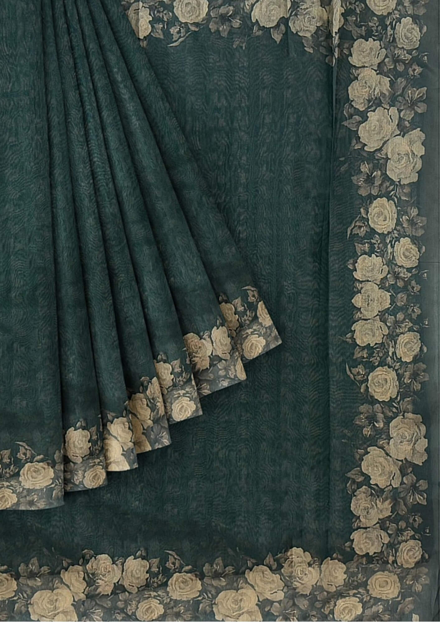 A Symphony of Style: Green Half Tussar Saree with Digital Print & Cut Work