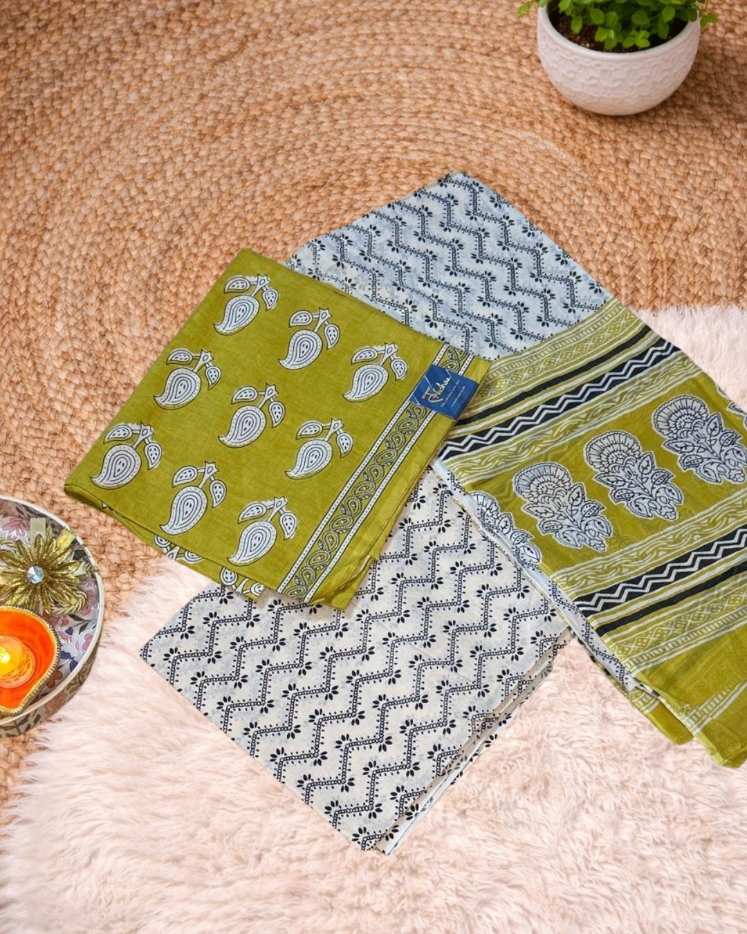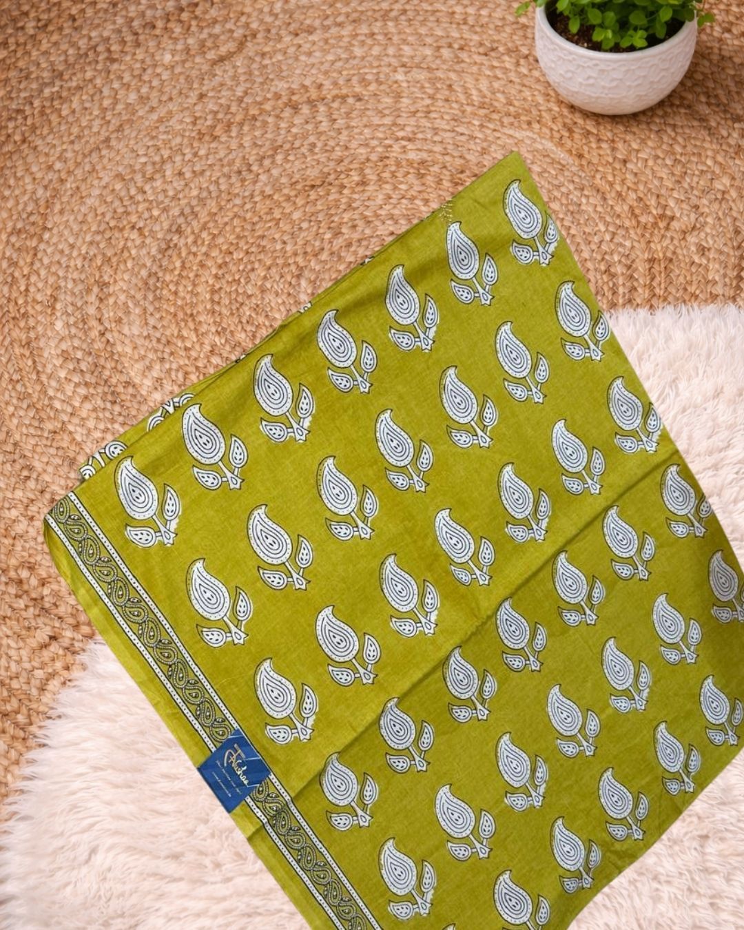 For the first wash, soak the saree in cold water with a palmful of rock salt for 15–20 minutes. Avoid the harsh agitation of a washing machine. Use a mild, eco-friendly liquid detergent.