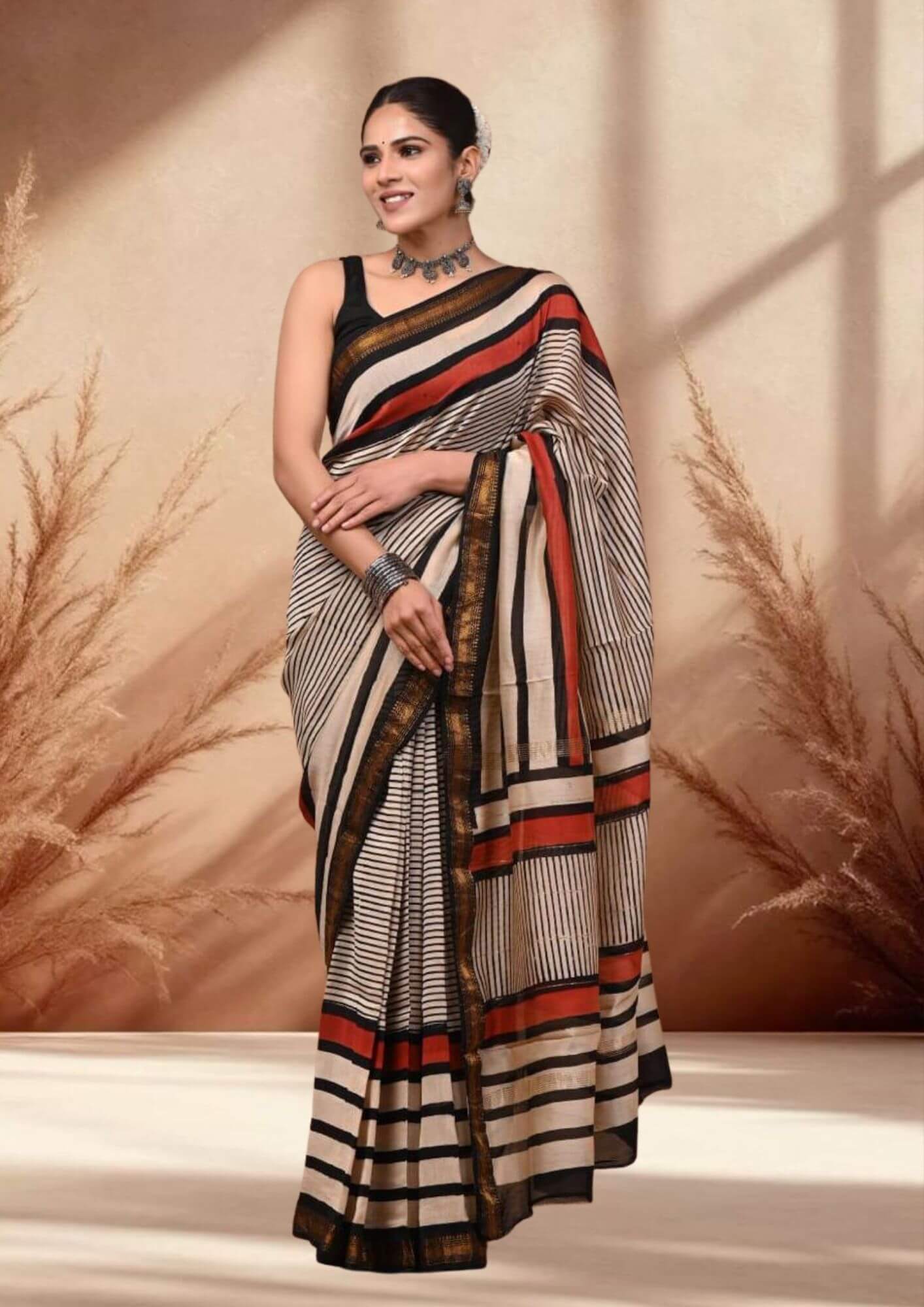 Classic Stripes Maheshwari Saree