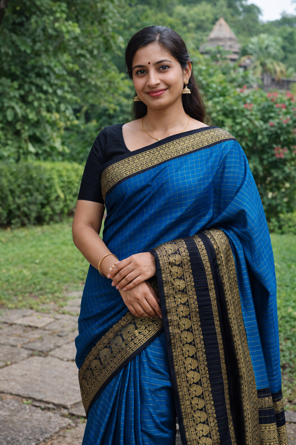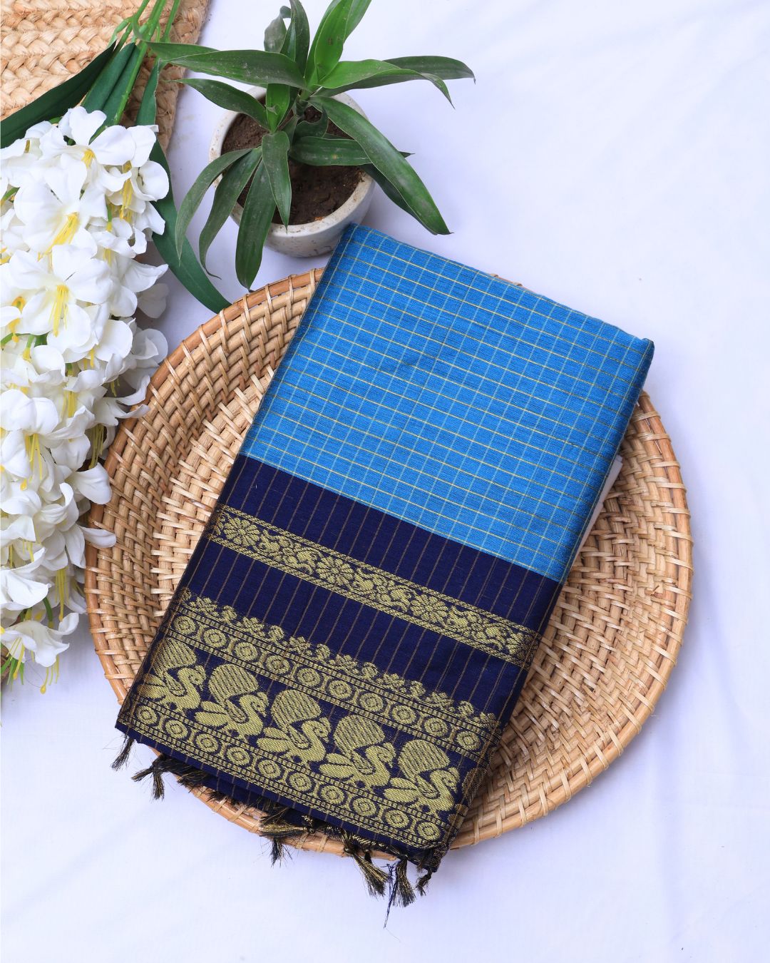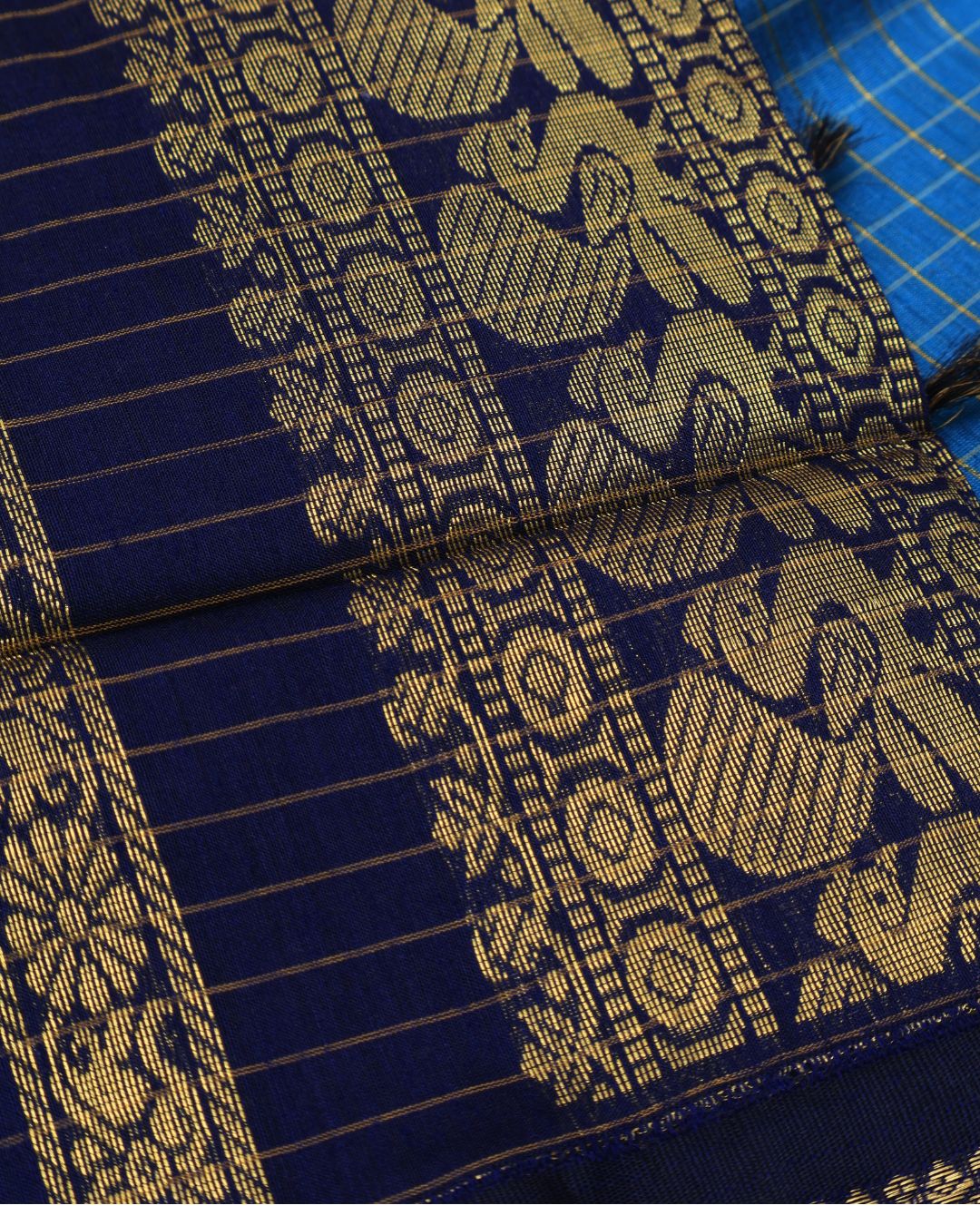 Firozi & Blue Check Mangalagiri Cotton Saree