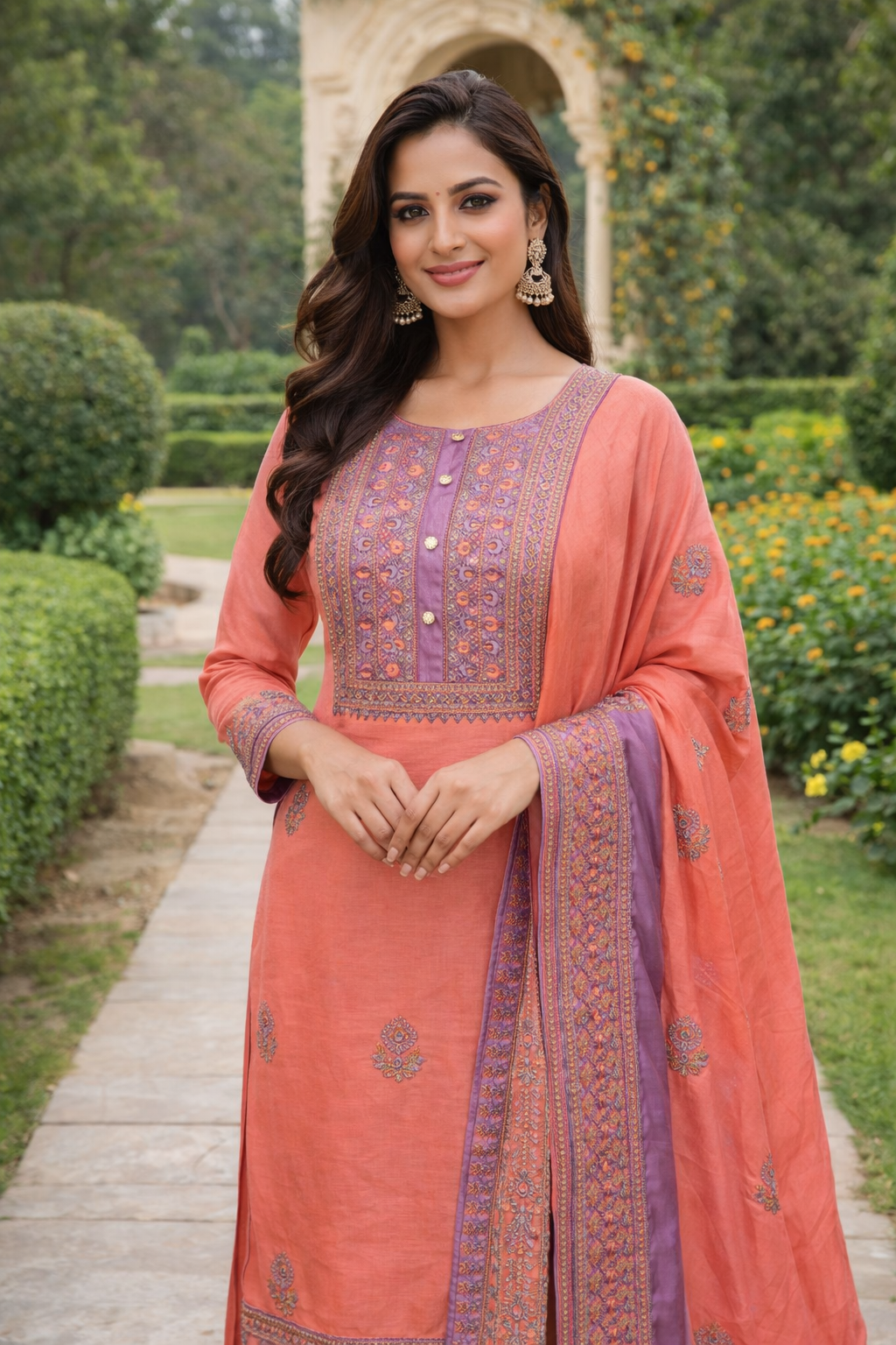 Kurta Fabric -Cotton Silk Dupatta Fabric -Cotton Silk Bottom Fabric - Shantoon