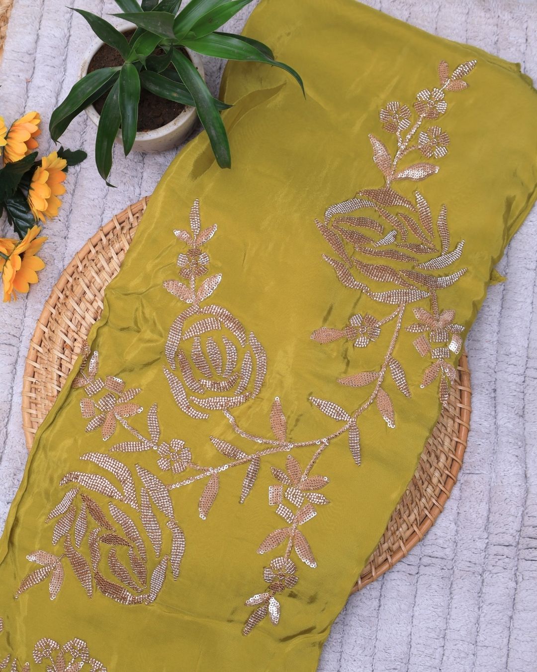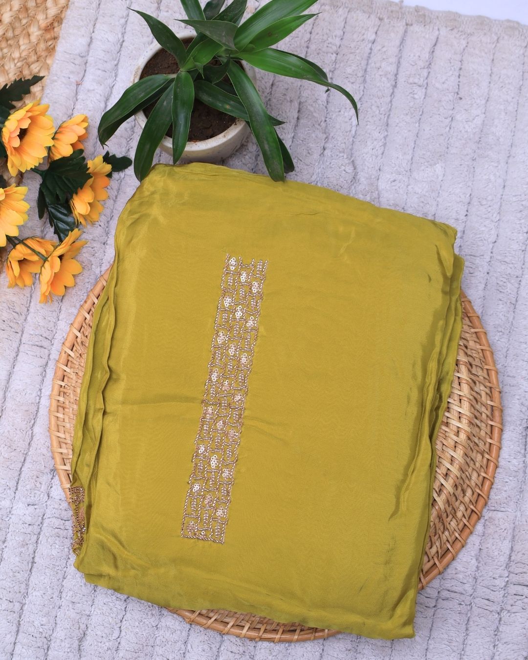 Capture the essence of traditional beauty with our opulent Mehendi Green Satin Silk Suit Set. The deep, earthy Mehendi Green hue—reminiscent of rich henna tones—is perfectly amplified by the smooth, high-sheen finish of Satin Silk. This fabric not only feels incredibly luxurious against the skin but also drapes with a spectacular fluidity, making the color appear even more intense and regal. This suit set is an elegant, sophisticated choice for traditional ceremonies, festive celebrations, and wedding events where you want both comfort and striking visual depth