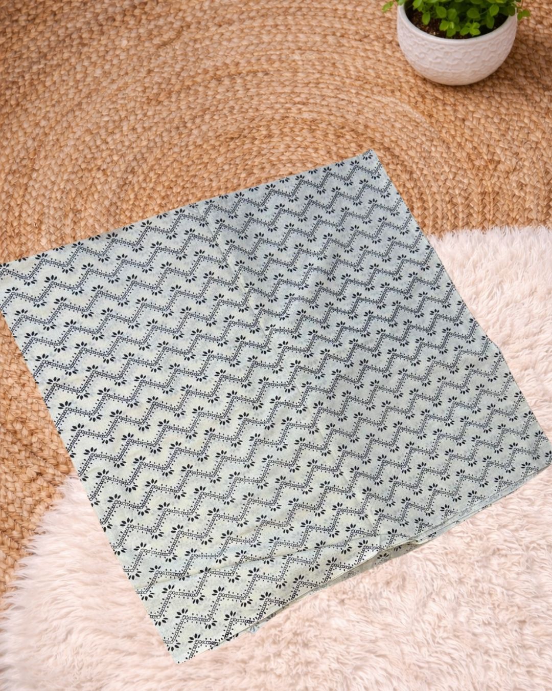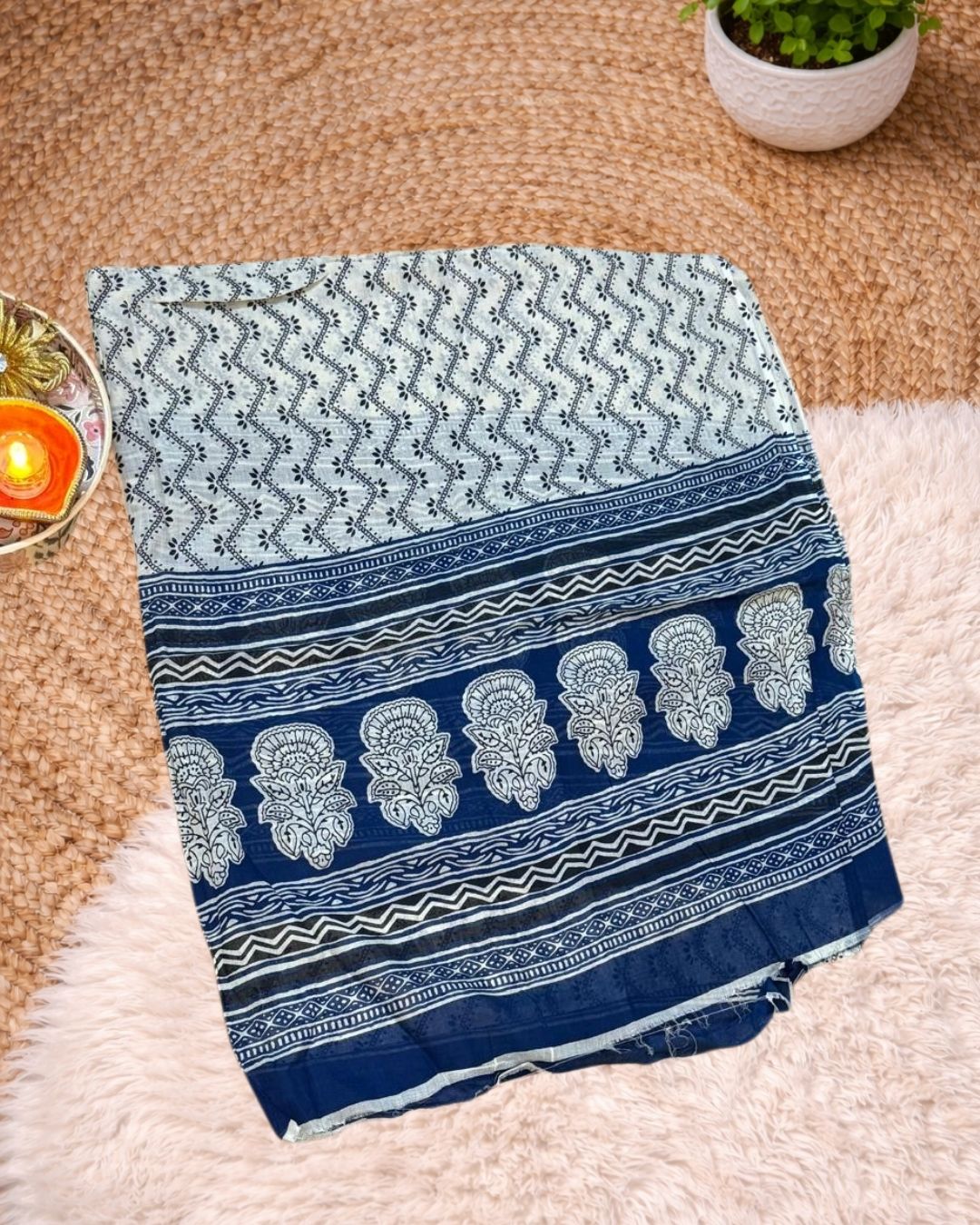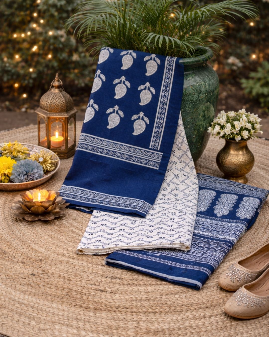 For the first wash, soak the saree in cold water with a palmful of rock salt for 15–20 minutes. Avoid the harsh agitation of a washing machine. Use a mild, eco-friendly liquid detergent.