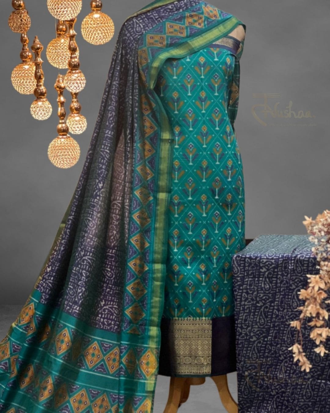 Kurta Fabric - Patola Silk; Dupatta Fabric - Silk; Bottom Fabric - Shantoon