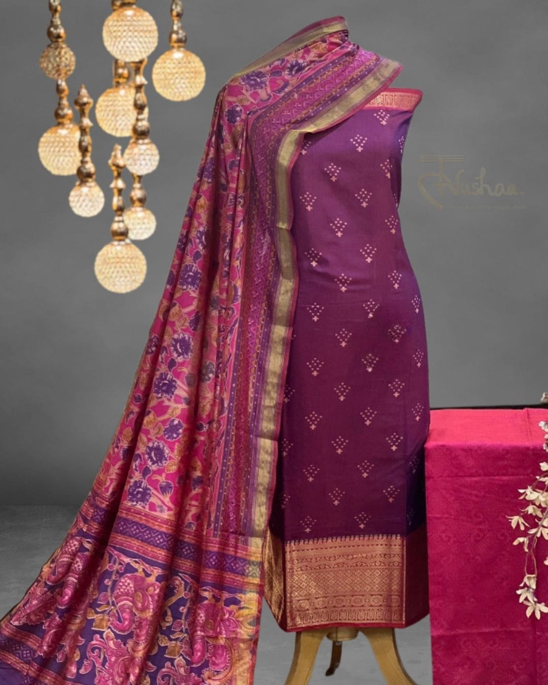 Purple Batik Silk Suit Set: Vibrant Print, Luxurious Finish