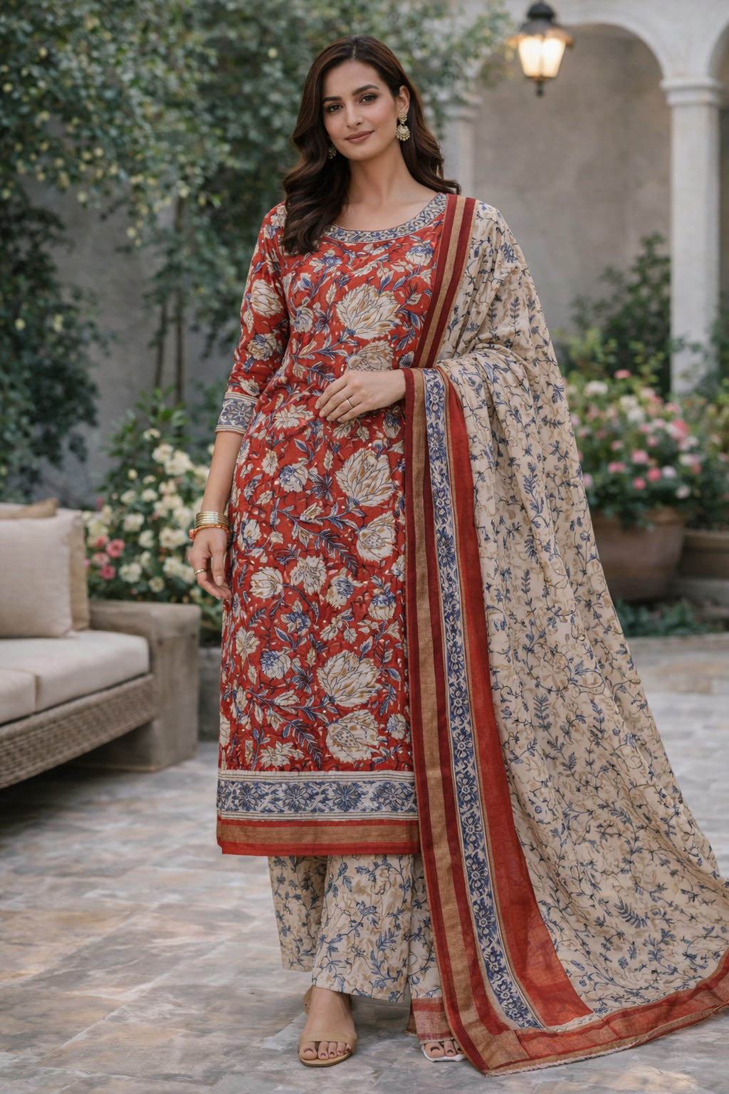Make an unforgettable statement with our classic Red and White Chanderi Suit Set. Chanderi fabric is highly prized for its luxurious feel, lightweight texture, and subtle, sophisticated sheen. The iconic pairing of vibrant Red—a color of passion and celebration—with crisp, pristine White creates a visually stunning and instantly elegant contrast. This ensemble perfectly blends traditional Indian artistry with bold, contemporary style, making it an ideal choice for festive events, special occasions, and celebrations where you want to radiate confidence.