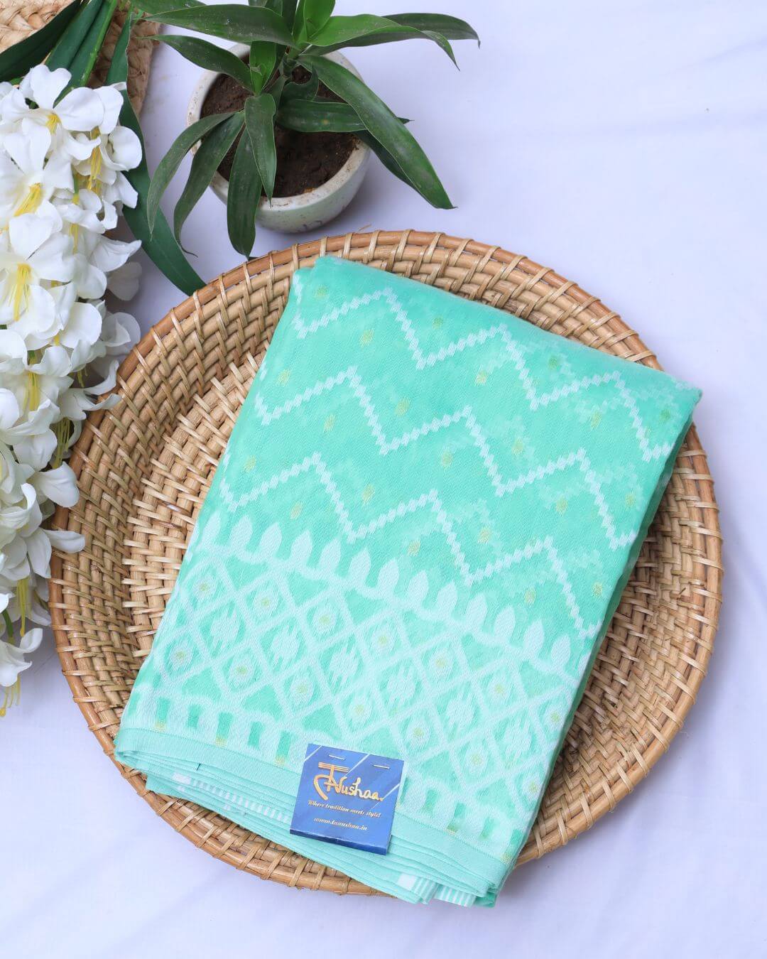 Sea Green Semi Dhakai Jamdani Cotton Saree