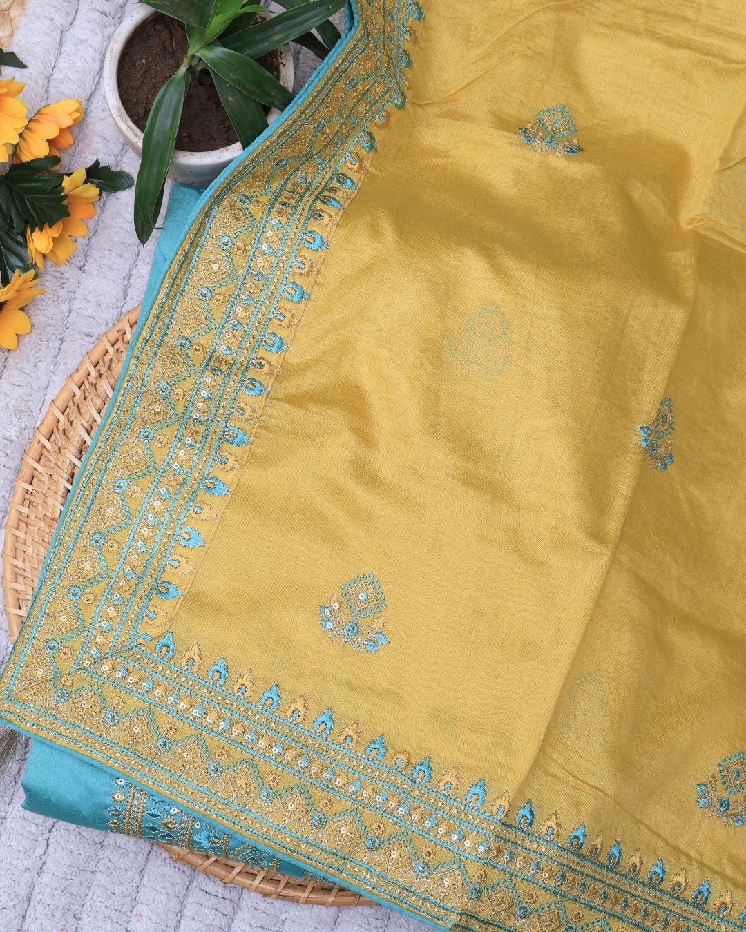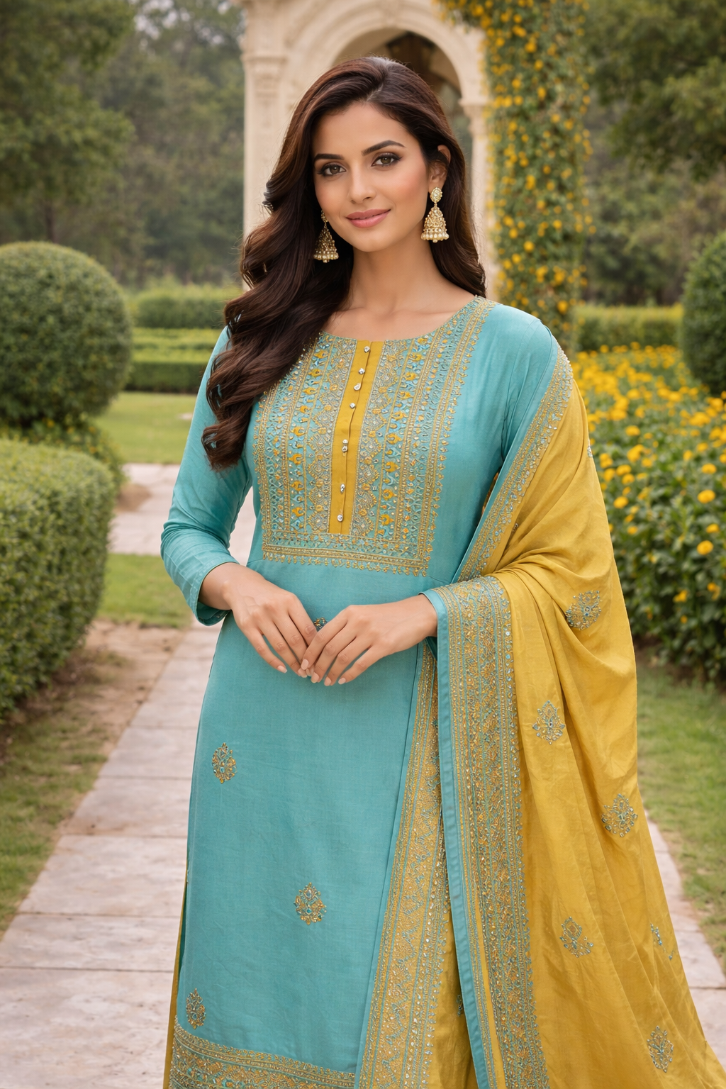 Embrace fresh, vibrant elegance with this beautiful Sea Green and Yellow Unstitched Suit Set. This delightful combination is crafted from a premium Cotton Silk blend, offering a luxurious feel with the essential breathability of cotton. The cheerful pairing of a soothing Sea Green base with sunny Yellow accents makes this ensemble a perfect statement piece for spring events, festive occasions, or brightening up your everyday wardrobe.