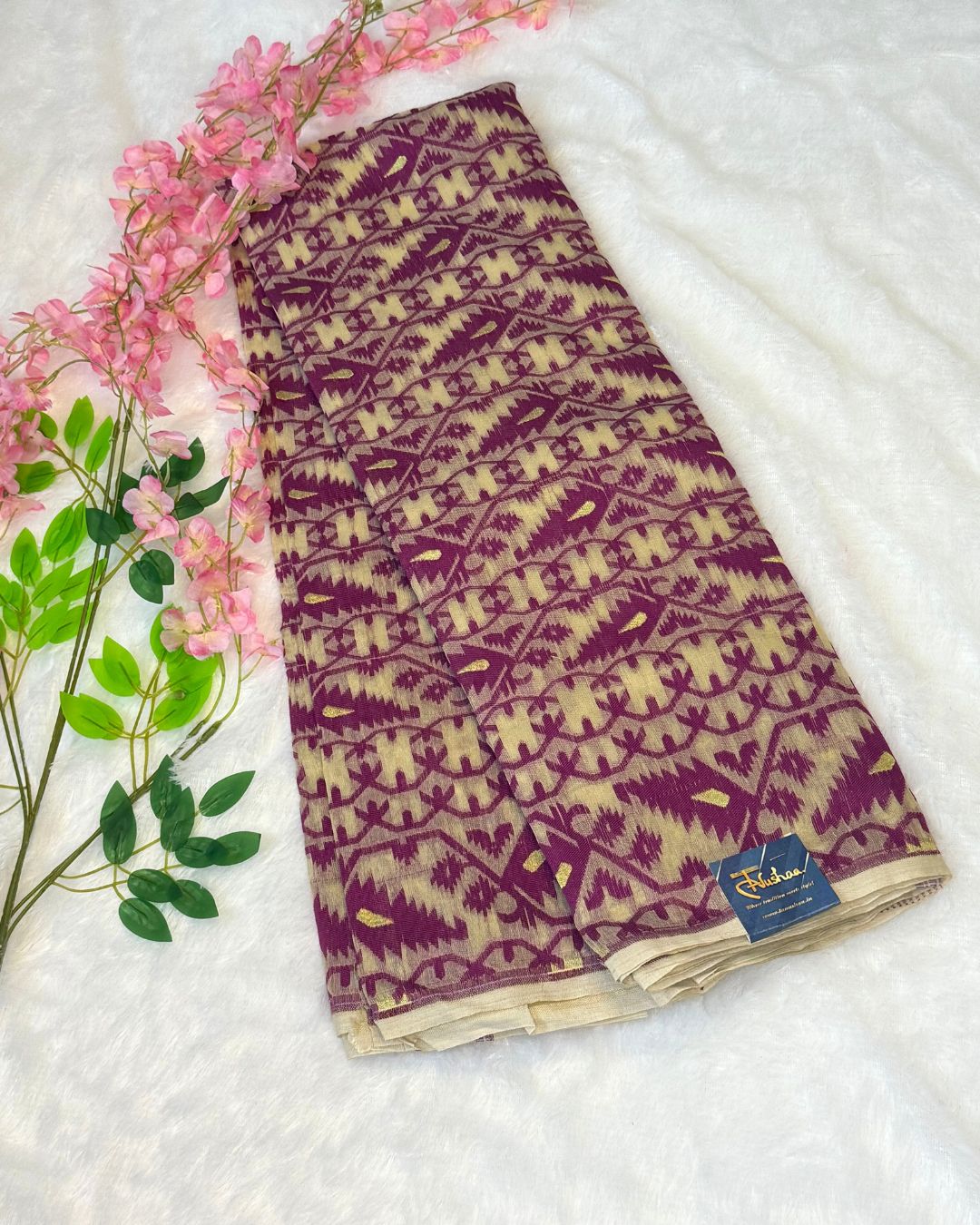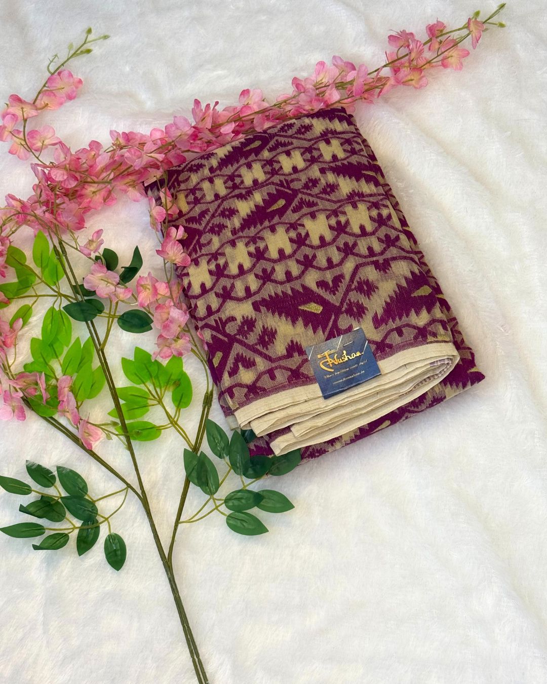 Semi Dhakai Jamdani Cotton Wine & Off-white